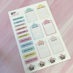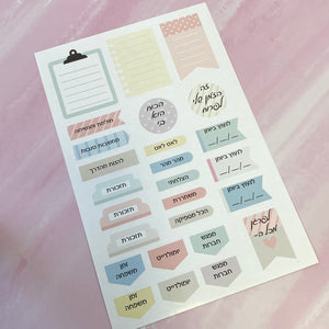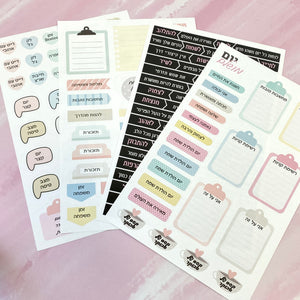 מארז 4 דפי מדבקה מעוצבים ליומן, קלנדר או כל מחברת אחרת
