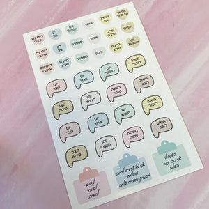 סט מהמם של ארבעה גליונות מעוצבים , מעל 120 מדבקות מתוקות מעוצבות ויפיפיות בחיתוכים שונים עם מגוון מסרים מחבקים ומעצימים, תזכורות למשימות ופעילות בשגרה, שיעלו חיוך ליום נפלא ומוסיפות עניין לכל יומן, פלנר ו/או כל מחברת אחרת.