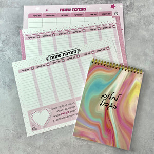 סט מרגש לחזרה לספסל הלימודים, לתלמידה מהממת, הכולל סט 3 גליונות של מערכת שעות שבועית,