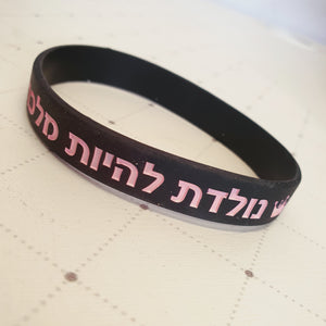 צמיד סילקון שחור מעצים מהמם ביופיו, עם כיתוב מוטבע שקוע בצבע ורוד ואיור של כתר.