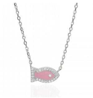 שרשרת נדירה ביופייה עשוייה כסף 925 מצופה ברודיום לשמירה על איכות גבוהה עליה דג ורוד בייבי משובץ בזרקונים. שרשרת מהממת ומדהימה.