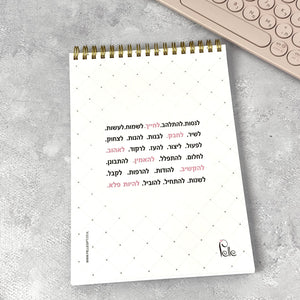 המחברת מכילה 78 דפי שורה בהדפסה צבעונית. בכל עמוד, טמון משפט העצמה מרגש.