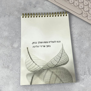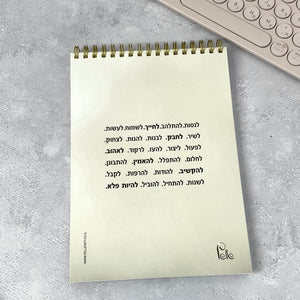מחברת יוניסקס מעוצבת בגודל A5, כריכת ספירלה מתכת זהב, הדפסה בגימור מאט למראה זוהר.