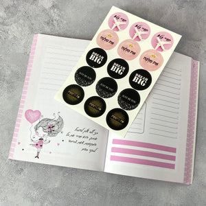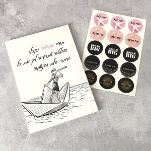 סט מקסים ומיוחד של מחברת מעוצבת גודל A5  ודף מדבקה דגם : תהיי אמיצה