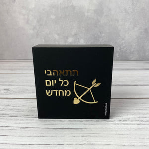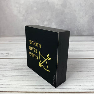 בלוק עץ שחור ריבוע קטן דגם תתאהבי כל יום מחדש
