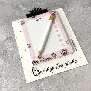 דפי ממו ועיפרון קטן לבן/עץ על גבי מגנט מתוק ביופיו