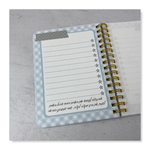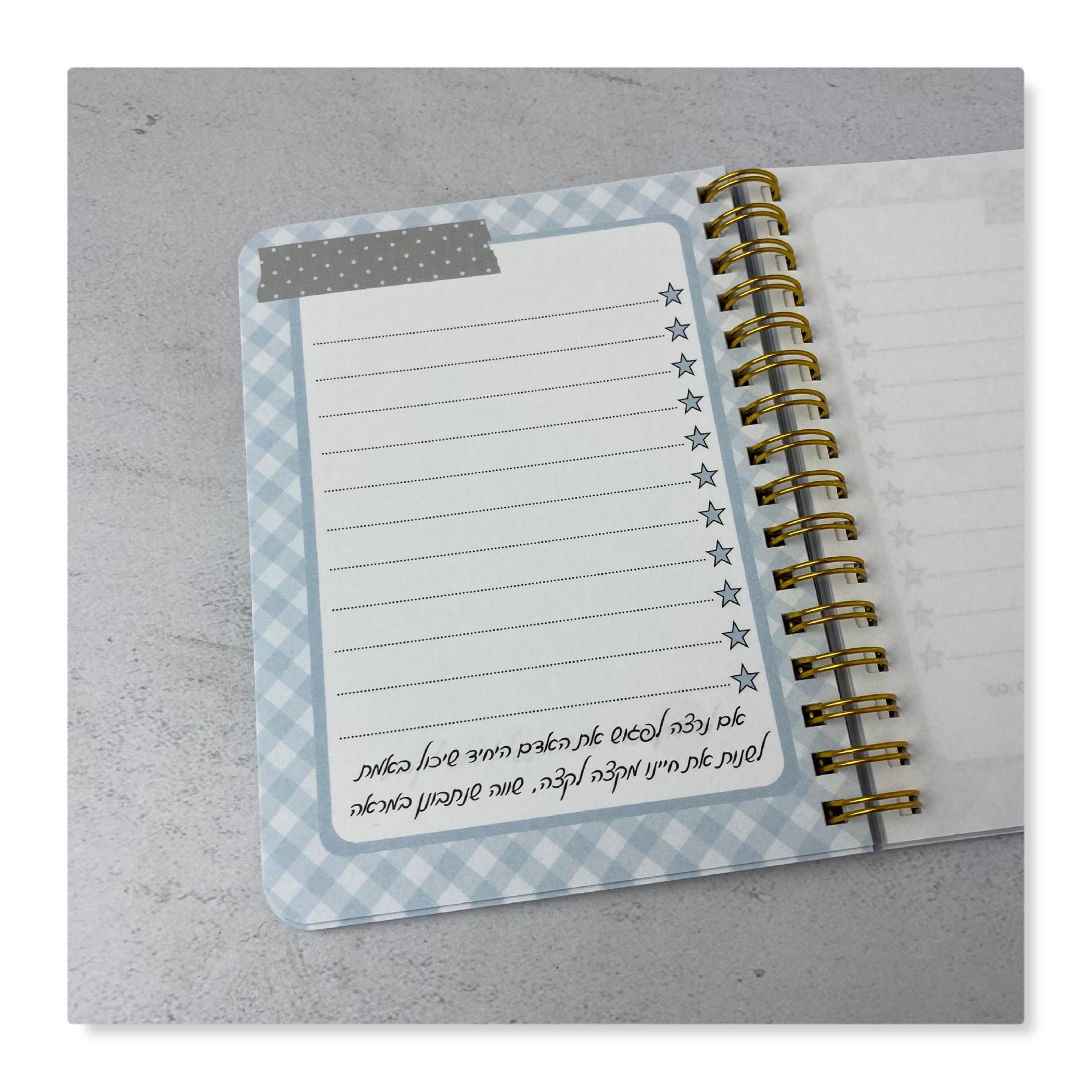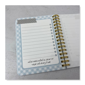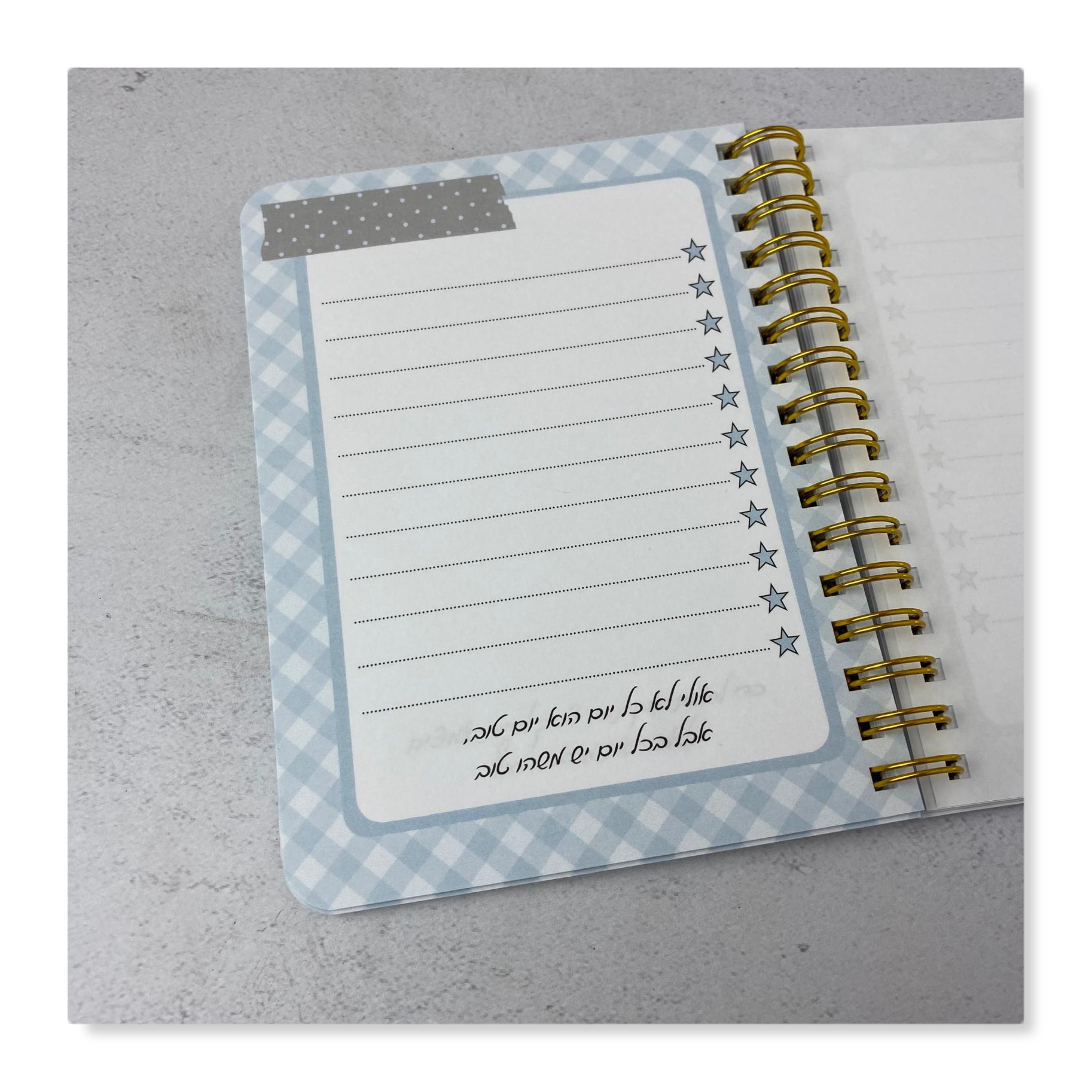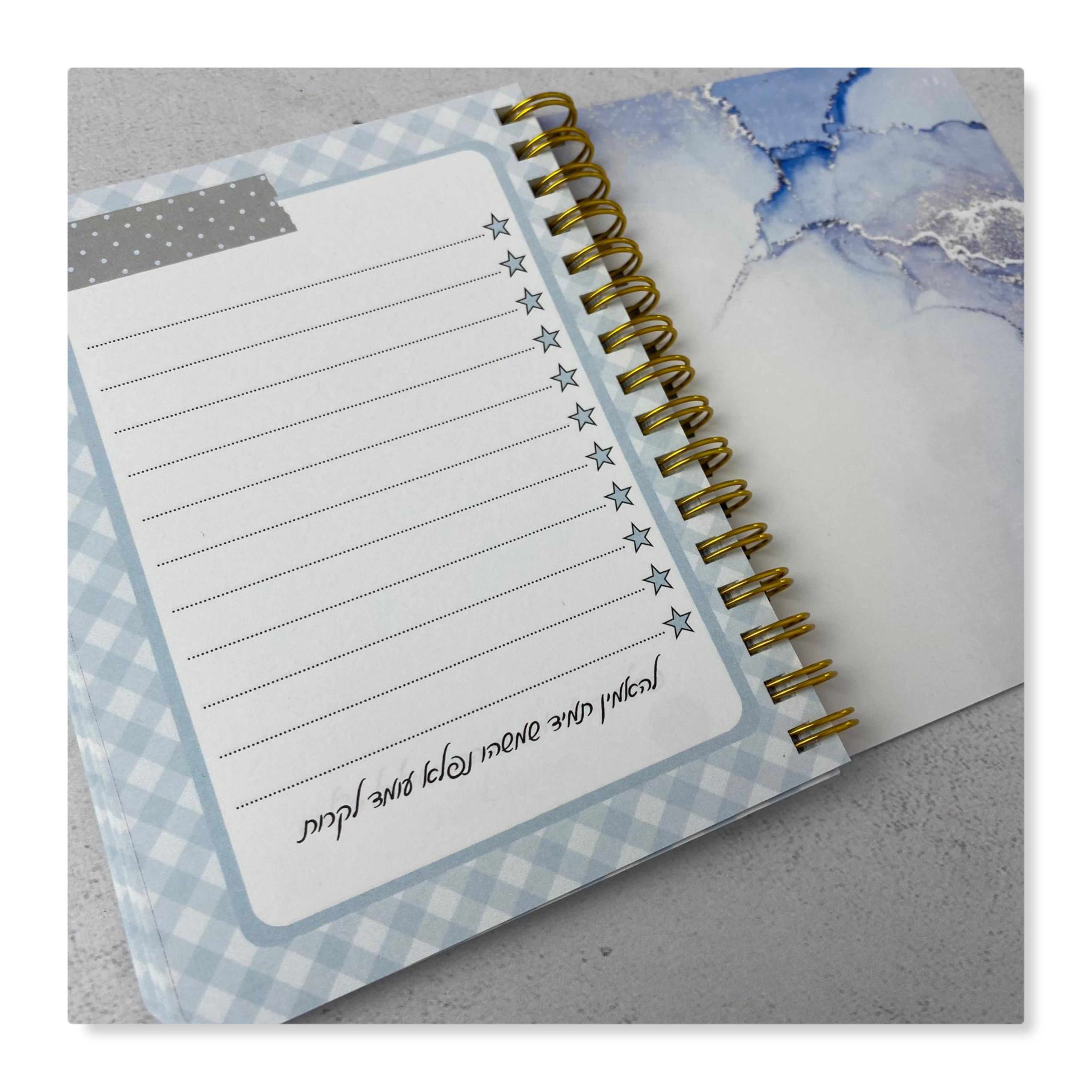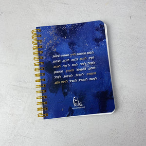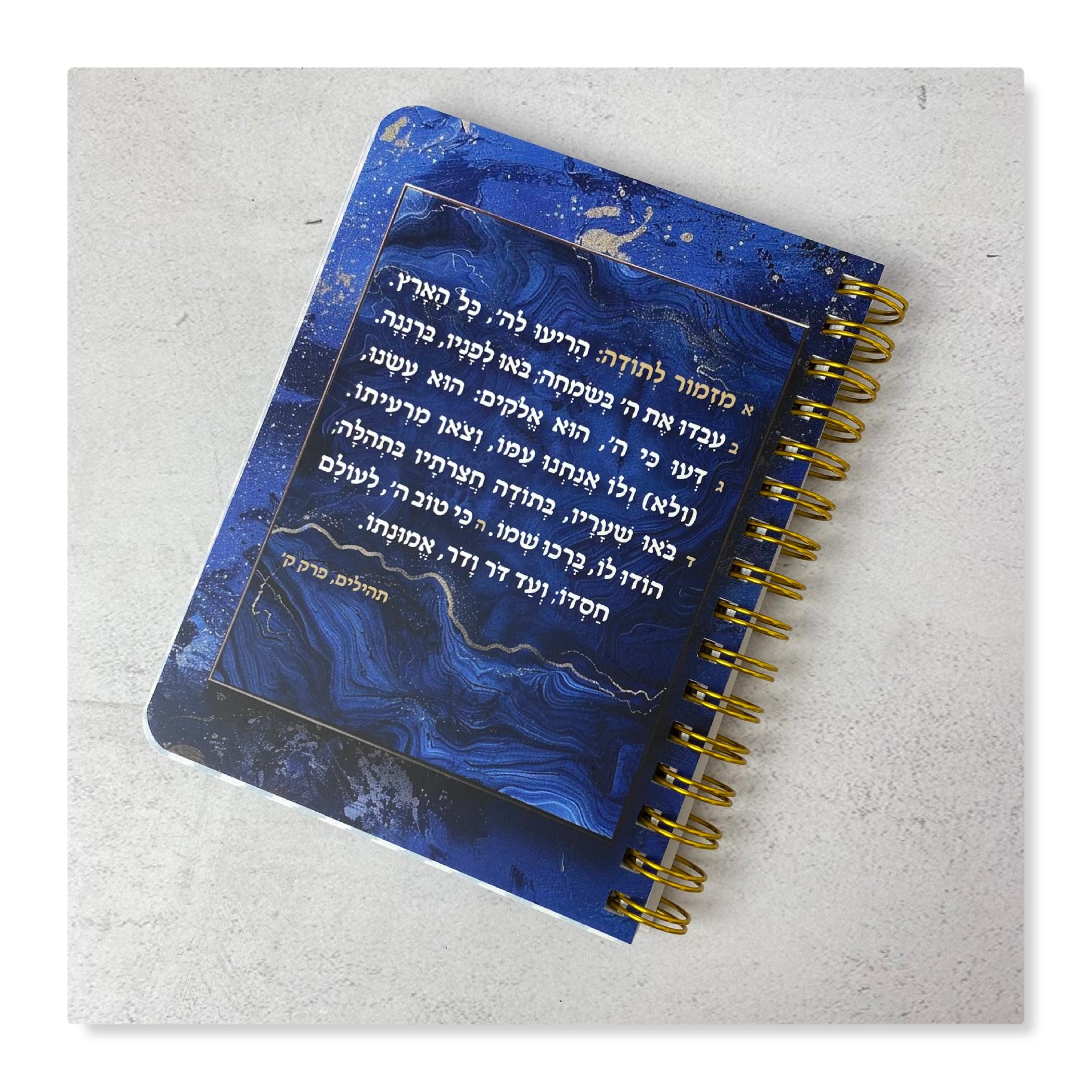 מזמור לתודה מעוצב במחברת כיס כחולה בגודל A6,