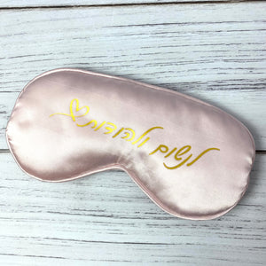 מסכת עיניים מושלמת בצבע ורוד בייבי עליה כתוב לנשום ולהודות בצבע זהב עדין. עשויה בד סאטן יוקרתי עם ריפוד פנימי למגע רך ונעים על העיניים, עם סרט שחור לאחיזה טובה.