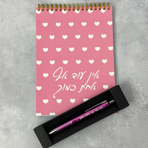 מארז מדהים, מתנה מושלמת ומעצימה לכל מי שמעריכים ואוהבים. הסט כולל מחברת ספירלה גודל A5 דגם אין עוד אף אחת כמוך ועט ורוד דגם אין עוד אף אחת כמוך.