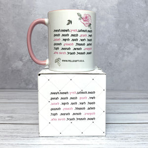 על הספל כתוב: השראתה של מורה ניטעת לעולם בתוך הלב,תודה שעזרת לי לצמוח.