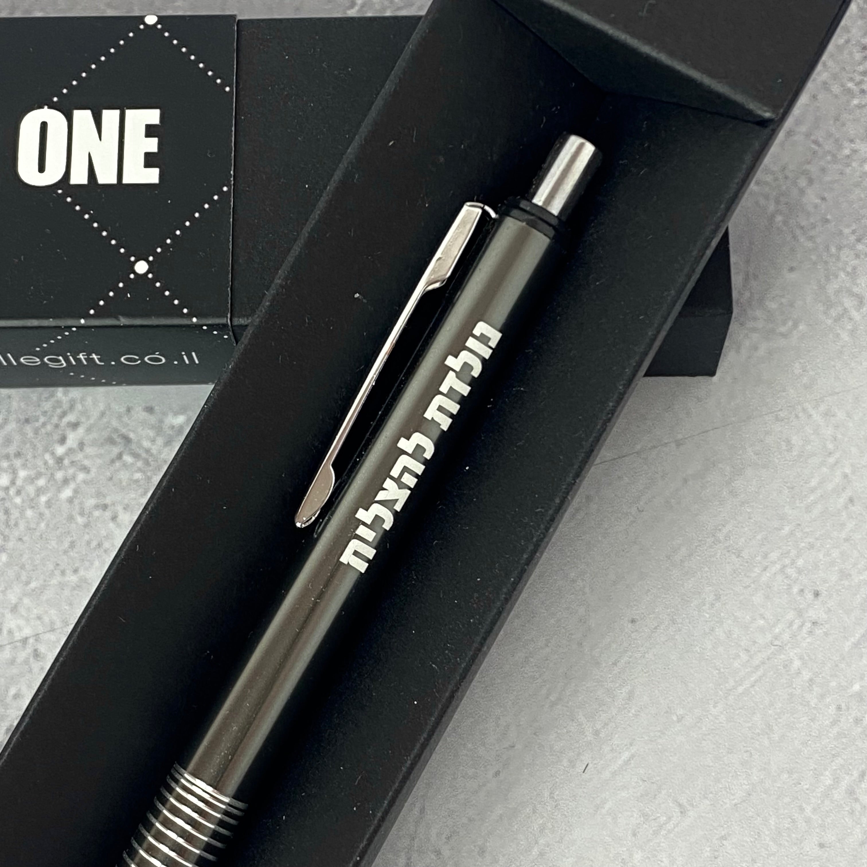 עט ג'ל יוקרתי עם גוף מתכת בצבע כסוף, חוד מחט בתוספת חריטה בלייזר של המשפט        "נולדת להצליח".
