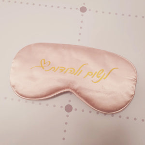 מסכת עיניים מושלמת בצבע ורוד בייבי עליה כתוב לנשום ולהודות בצבע זהב עדין. עשויה בד סאטן יוקרתי עם ריפוד פנימי למגע רך ונעים על העיניים, עם סרט שחור לאחיזה טובה.