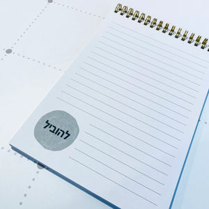 מחברת מעוצבת יוניסקס  בגודל A5, כריכת ספירלה מתכת זהב, הדפסה בנייר מודוליאני בגימור מאט  למראה זוהר.