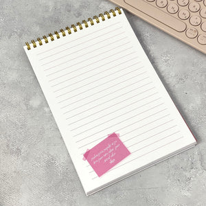המחברת מכילה 78 דפי שורה בהדפסה ורוד/לבן. בין העמודים, טמונים מסרים משמחים ומעצימים.