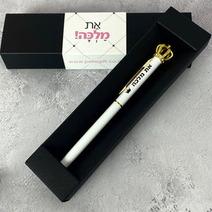 בתוספת חריטה בלייזר של המשפט "את מלכה"