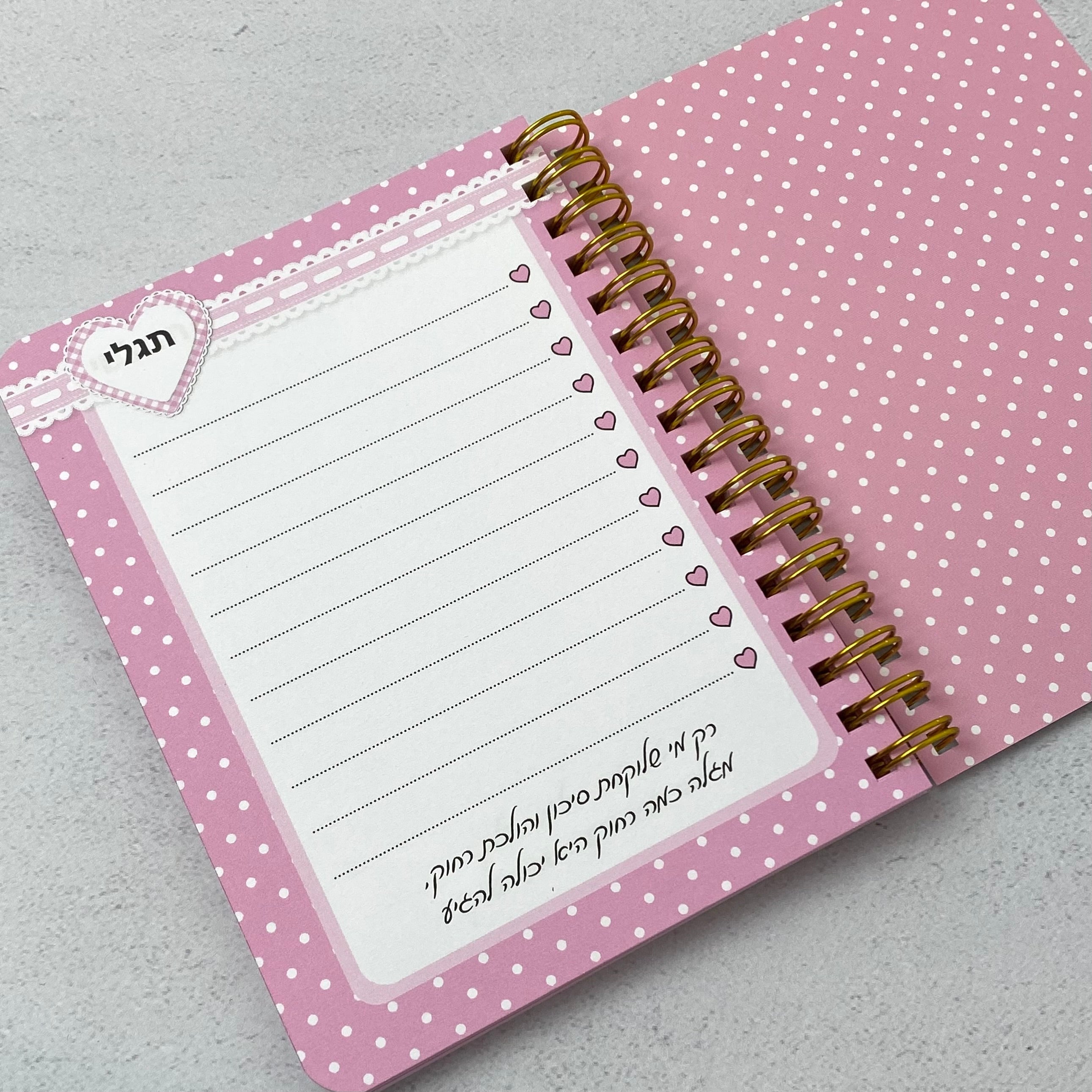 המחברת מכילה 70 דפי שורה ורוד לבן מהממים. בכל עמוד, טמון משפט העצמה מרגש.