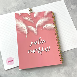מארז מחברת ספירלה גדולה דגם חולמת ומגשימה ועט הכל אפשרי ורוד