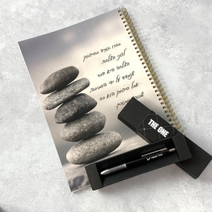 סט מדהים, מתנה מושלמת ומעצימה לכל מי שמעריכים ואוהבים. הסט יוניסקס כולל מחברת ספירלה מעוצבת בגודל  A4  דגם סיפוק והצלחה ועט דגם הכל אפשרי שחור