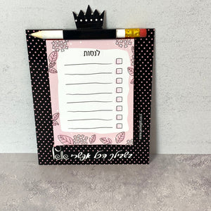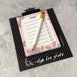 דפי ממו ועיפרון קטן לבן/עץ על גבי מגנט מתוק ביופיו