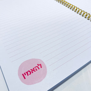 המחברת מכילה 60 דפי שורה בהדפסה צבעונית.  בכל עמוד שמאלי, טמונה מילת העצמה מרגשת.