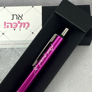 עט ג'ל יוקרתי עם גוף מתכת בצבע ורוד מטאלי, חוד מחט