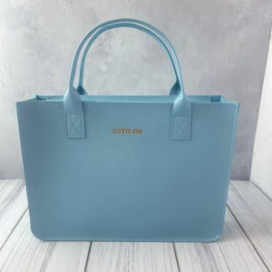 תיק צד קלאסי ומעוצב, בגימור דמוי עור איכותי בצבע תכלת רך