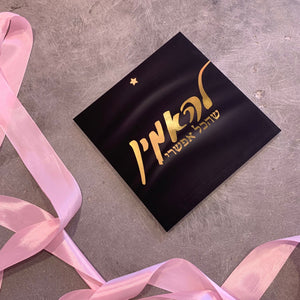 תמונה מודפסת על גבי קאפה שחורה בגימור מט עם המשפט "להאמין שהכל אפשרי" בהטבעת זהב.