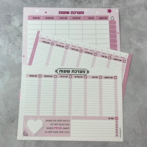 סט מרהיב ביופיו של 3 מערכות שעות בצבע ורוד מתוק עם משפט העצמה. גודל כל מערכת שעות הינו A4
