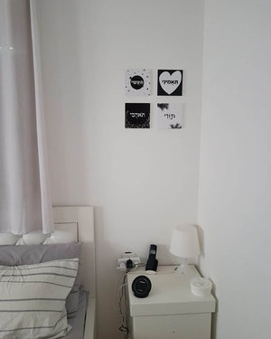 מגוון דגמים של תמונות עם מסרים מעצימים כל אחד לפי בחירתו בעיצוב שחור לבן לתליה על הקיר או על מדף בבית או במשרד. ניתן לשלב מספר תמונות יחד למראה מושלם.